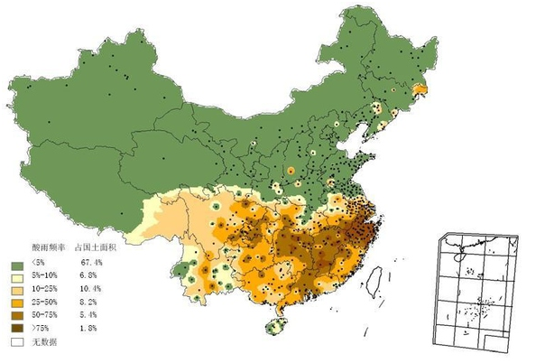 与此同时,以下是酸雨区酸雨发生的频率变化: